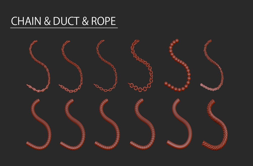 おまけのチェーンやダクト、ロープなどのカスタムブラシです。